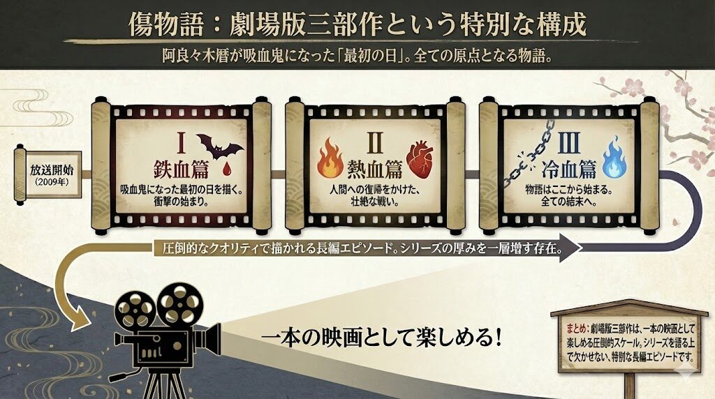 物語シリーズを語る上で欠かせないのが、劇場アニメとして制作された『傷物語』です。