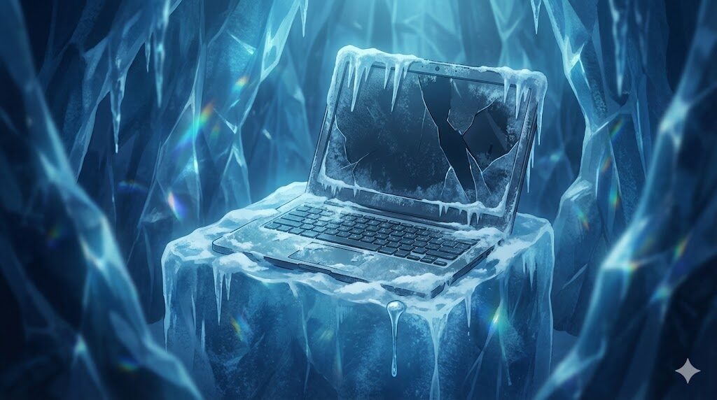 報瀬(しらせ)たちがたどり着いた場所には、貴子の姿も、遺体もありませんでした。そこにあったのは、氷に埋もれた1台のノートパソコンだけ。